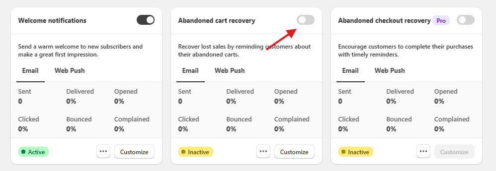 Here’s how you can enable & customize Abandoned Cart Recovery: