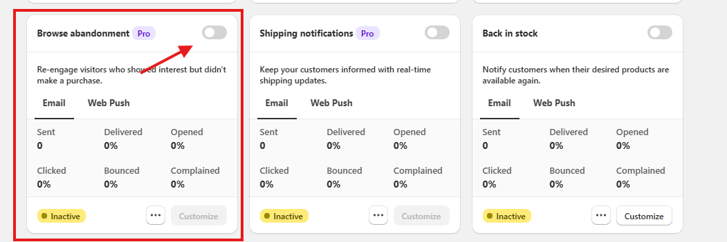 On the Automation page, Activate the switch/button on 'Browse Abandonment.'