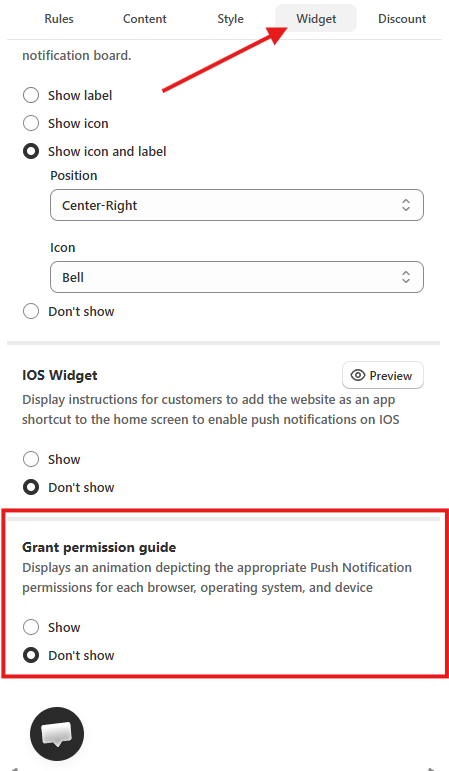 The "Trigger button" feature allows merchants to display a floating button on their website that remains visible after the main pop-up is closed.