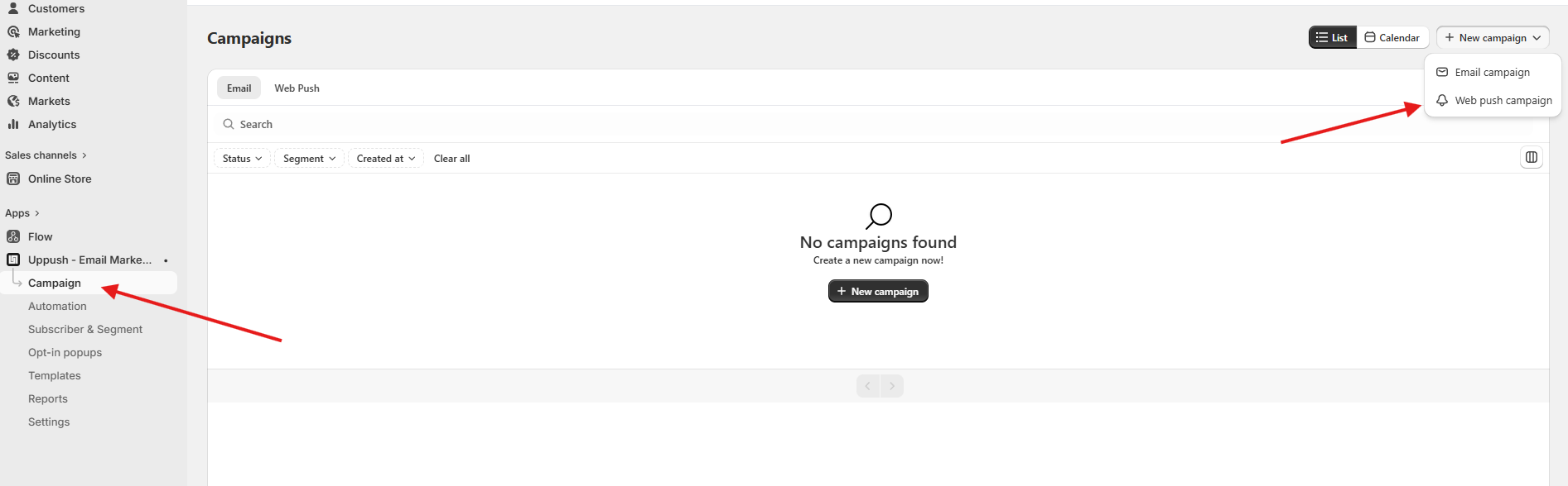 How to create a new web push campaign in Uppush