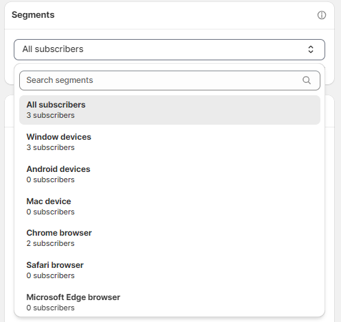 By default, your campaign is sent to 'All Subscribers'. However, if you want to select a specific customer segment, you can choose it here.