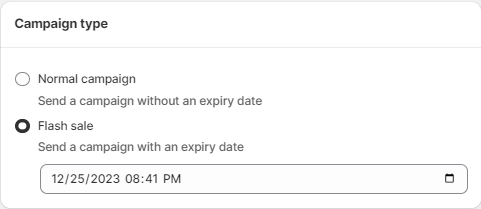 Here's how it looks when you select 'Flash Sale Campaign'. You can use the date picker to choose when you want the campaign to stop sending.